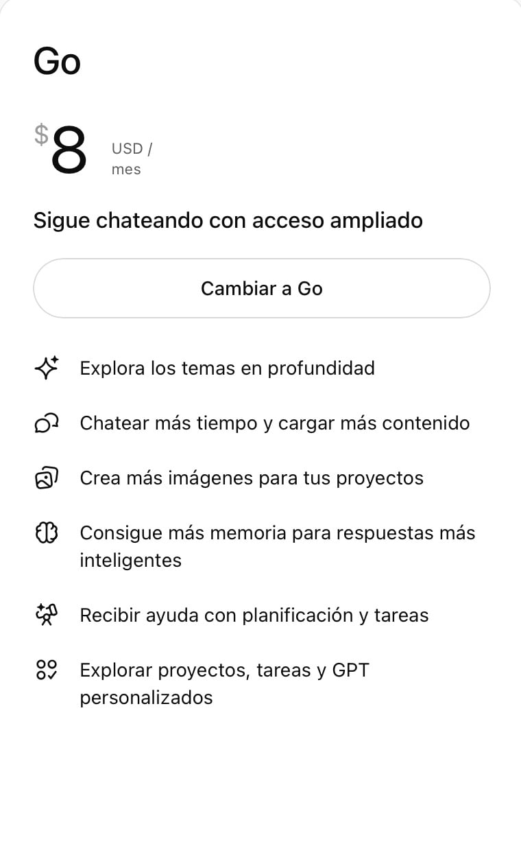 ChatGPT Go amplía así el abanico de opciones y refuerza la sensación de que ChatGPT ya funciona como un servicio global, con distintos niveles de acceso según las necesidades de cada usuario.