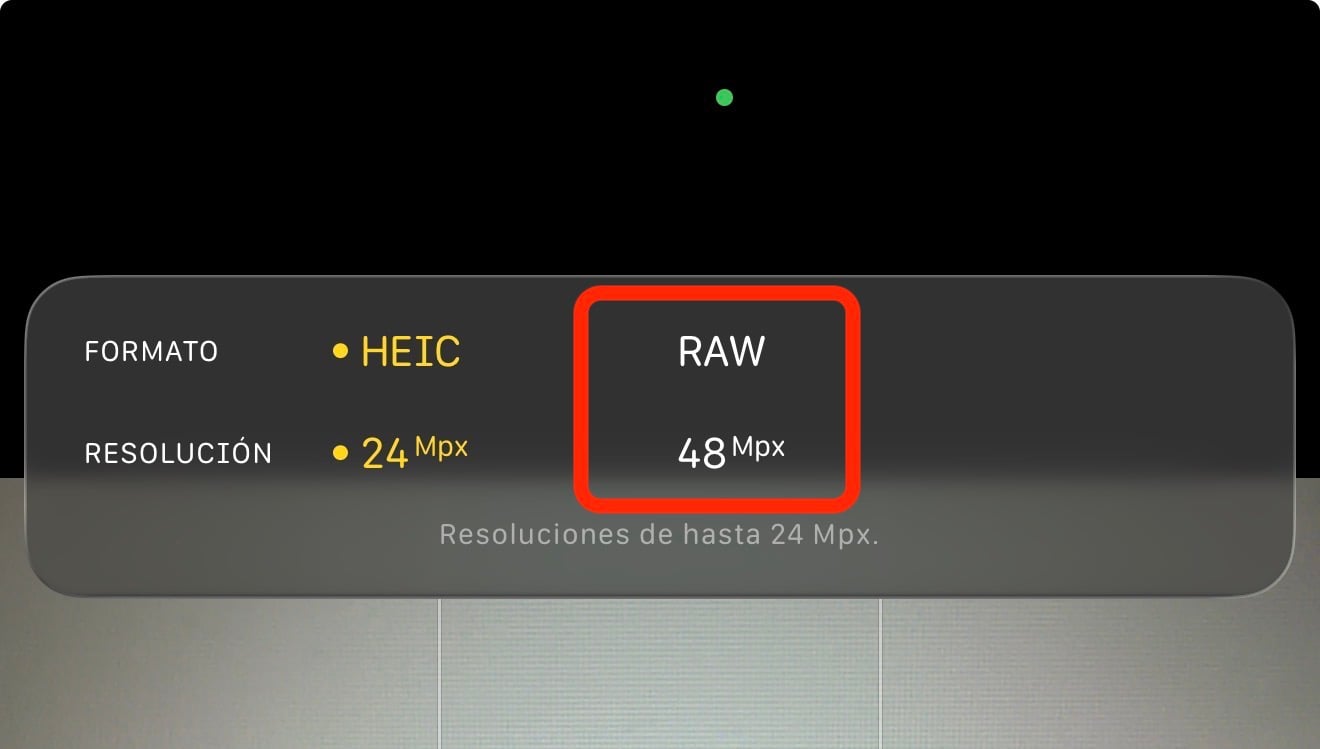 Además, puedes elegir la resolución predeterminada, ya sea 12 o 48 megapíxeles, según la cantidad de detalle que necesites. Si vas a editar posteriormente la imagen, la opción de 48 mpx es la más recomendable.