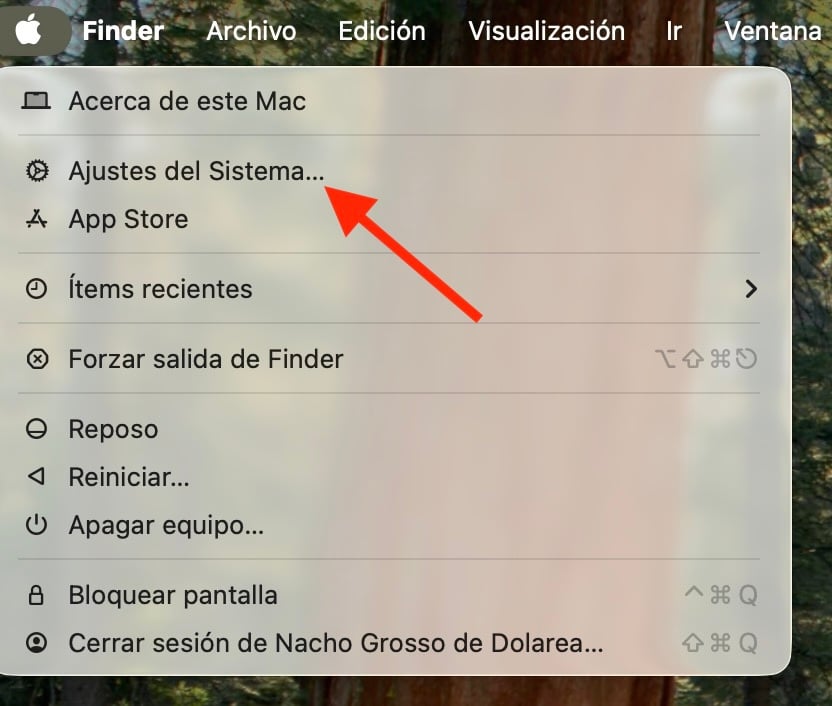 El primer paso es abrir los Ajustes de tu Mac. Solo tienes que ir a la esquina superior izquierda de la pantalla, pulsar sobre el menú de Apple y elegir la opción Ajustes del Sistema. Desde ahí podrás entrar a todas las preferencias de apariencia y personalización del Mac.