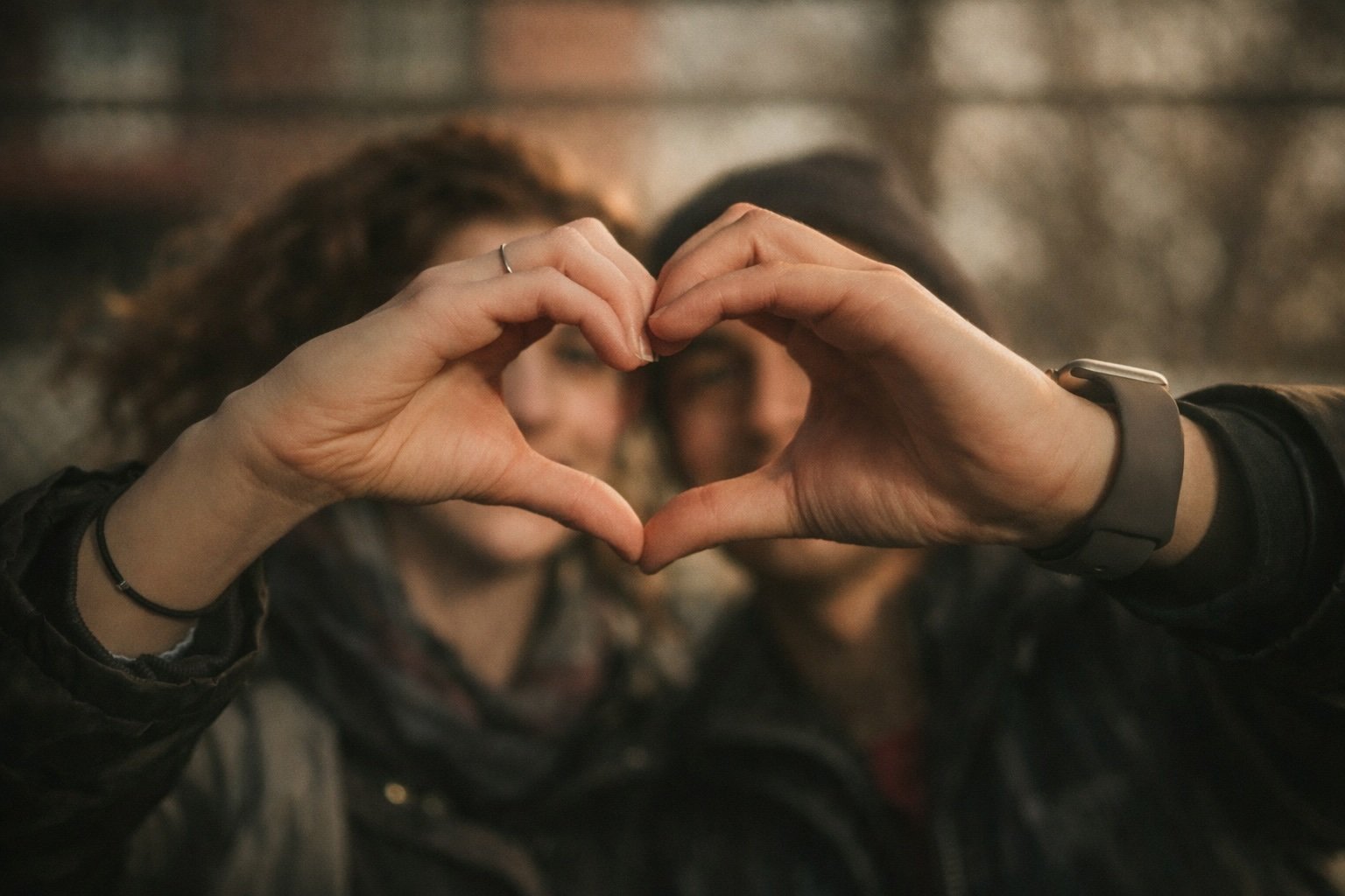 “Convierte esta foto en una escena estilo película romántica, con luz suave y efecto cinematográfico. Mantén nuestras expresiones naturales.”