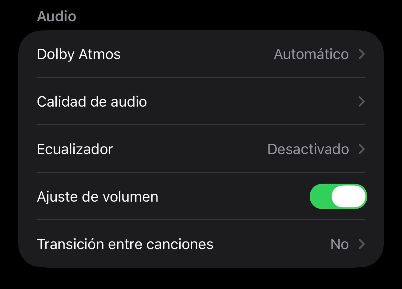 Este ajuste se puede activar en los mismos menús de calidad de audio y funciona especialmente bien con auriculares compatibles, como los AirPods. No todas las canciones están adaptadas a este formato, pero los álbumes pensados para Atmos ofrecen una experiencia diferente, especialmente en pop, electrónica y bandas sonoras.