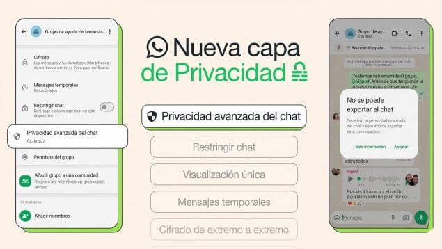 La privacidad avanzada del chat de WhatsApp es una de esas funciones que mucha gente todavía no ha tocado, pero que tiene bastante sentido en determinadas conversaciones. No sustituye al cifrado de extremo a extremo, que ya protege los mensajes de forma predeterminada, pero sí añade límites extra para evitar que el contenido del chat salga con facilidad fuera de la aplicación. WhatsApp presentó esta función en abril de 2025 y la describió como una nueva capa de protección disponible tanto en chats individuales como en grupos.