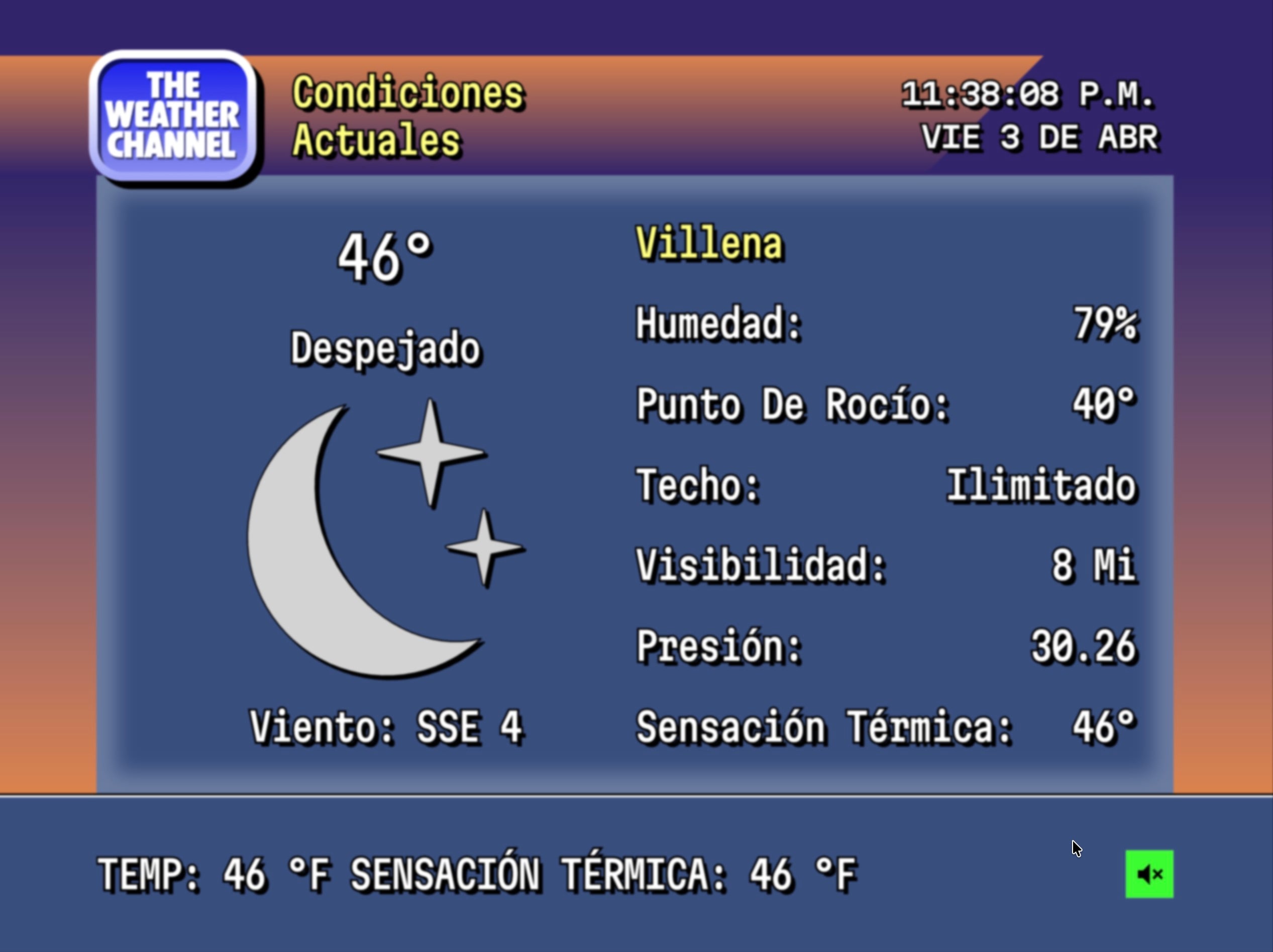 El sistema utiliza la ubicación geográfica del dispositivo para mostrar datos precisos de temperatura, humedad y viento. Es importante destacar que, aunque la apariencia sea antigua, la información que procesa es de última generación. Esto permite que el usuario obtenga lo mejor de ambos mundos: la fiabilidad de los satélites modernos y la limpieza visual de una época donde la información no competía con anuncios intrusivos ni vídeos de reproducción automática. Mucho ojo, la temperatura se muestra en grados Farenheit.