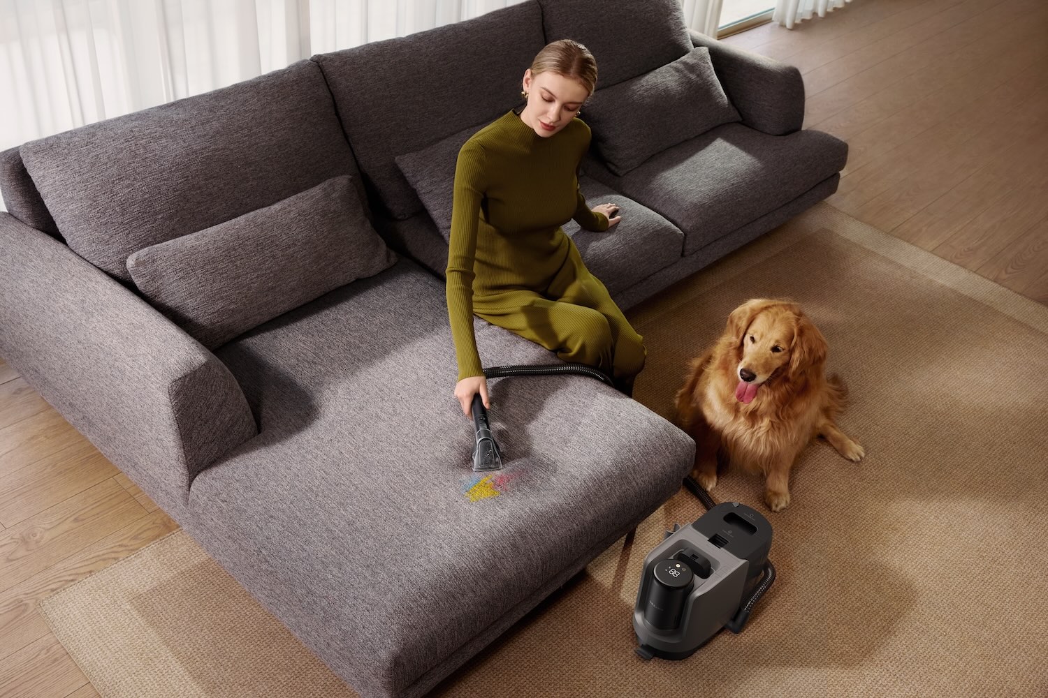 La base ThermoTub sumerge el cepillo en 240 ml de agua a 100 °C para ablandar suciedad pegajosa y derrames intensos, aumentando el flujo de agua un 98,3% frente a la generación anterior. Tras la sesión, el secado funciona en dos velocidades: Súper Rápido a 90 °C en 5 minutos o Alta Velocidad a 85 °C en 30 minutos, con un nivel sonoro de 63 dBA. El limpiador de manchas para alfombras deja solo un 5% de humedad residual y puede autolimpiarse por dentro con un toque para evitar malos olores en la manguera.