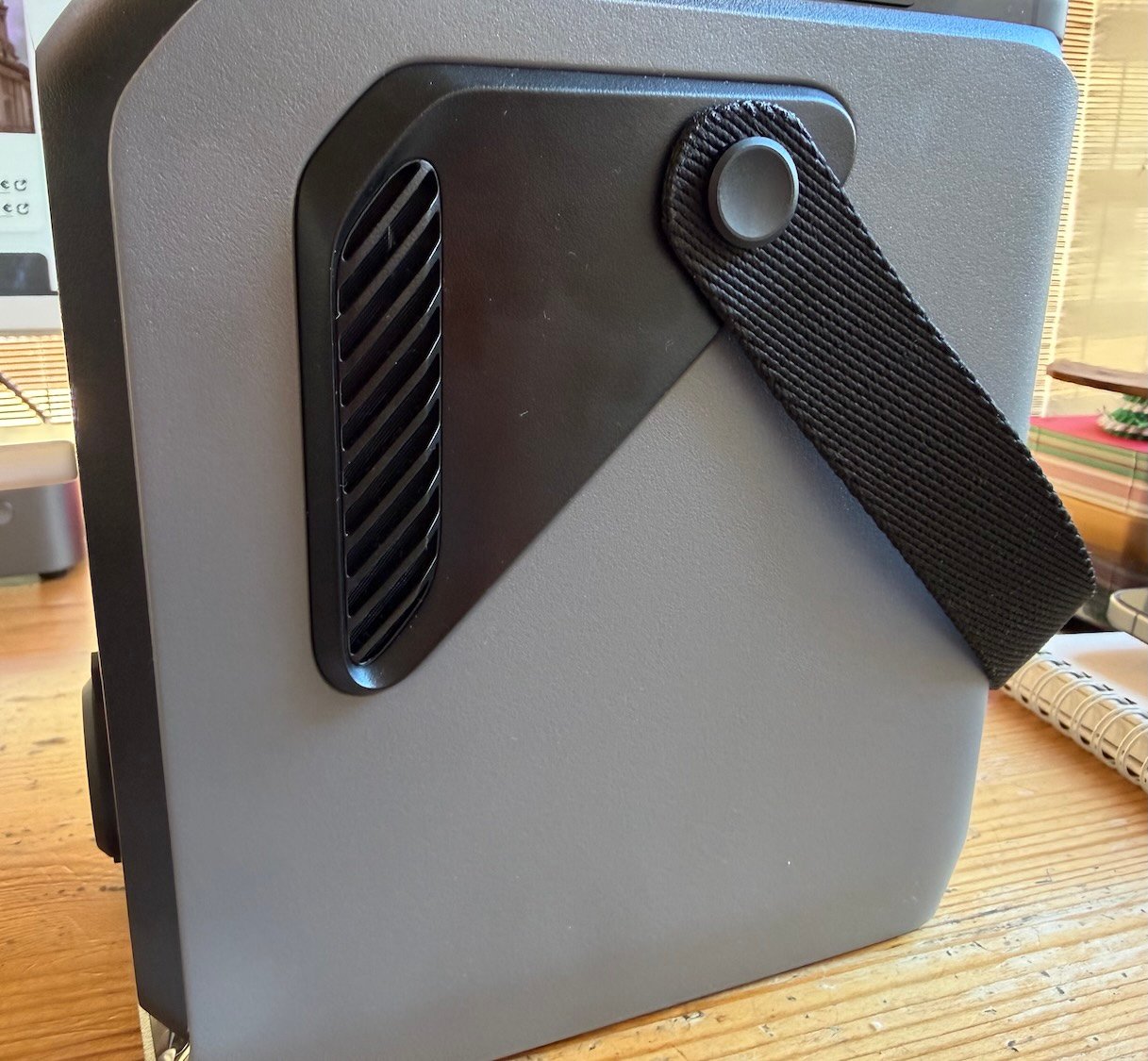 La carcasa transmite solidez y la construcción es mejor de lo que esperaba para su segmento. El asa superior queda bien integrada, no se clava en los dedos y no he notado crujidos ni vibraciones raras al moverla. La he apoyado en superficies irregulares o directamente en el suelo, y no he tenido la sensación de que sufra golpes o arañazos con facilidad. Es ese tipo de dispositivo que sabes que resistirá bien un uso prolongado.