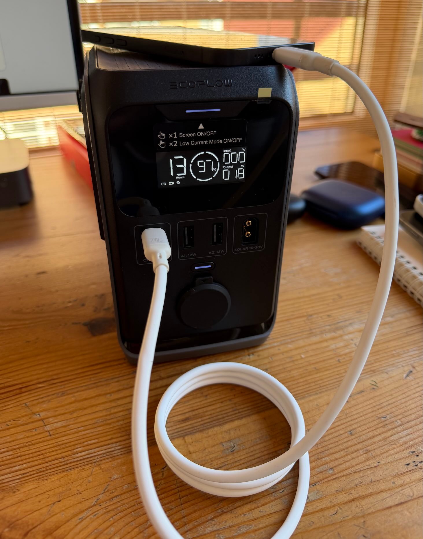 Aunque no he usado panel solar con ella, las cargas por cable han sido más rápidas de lo que esperaba en un modelo compacto. No me he encontrado esas esperas eternas que obligan a planificar todo alrededor de la batería. La TRAIL 300 DC se recarga en un tiempo realista, permitiendo que la utilices casi de manera espontánea, llega un momento en el que simplemente no piensas en la carga, porque sabes que en un rato vuelve a tener batería suficiente para seguir alimentando tus dispositivos.