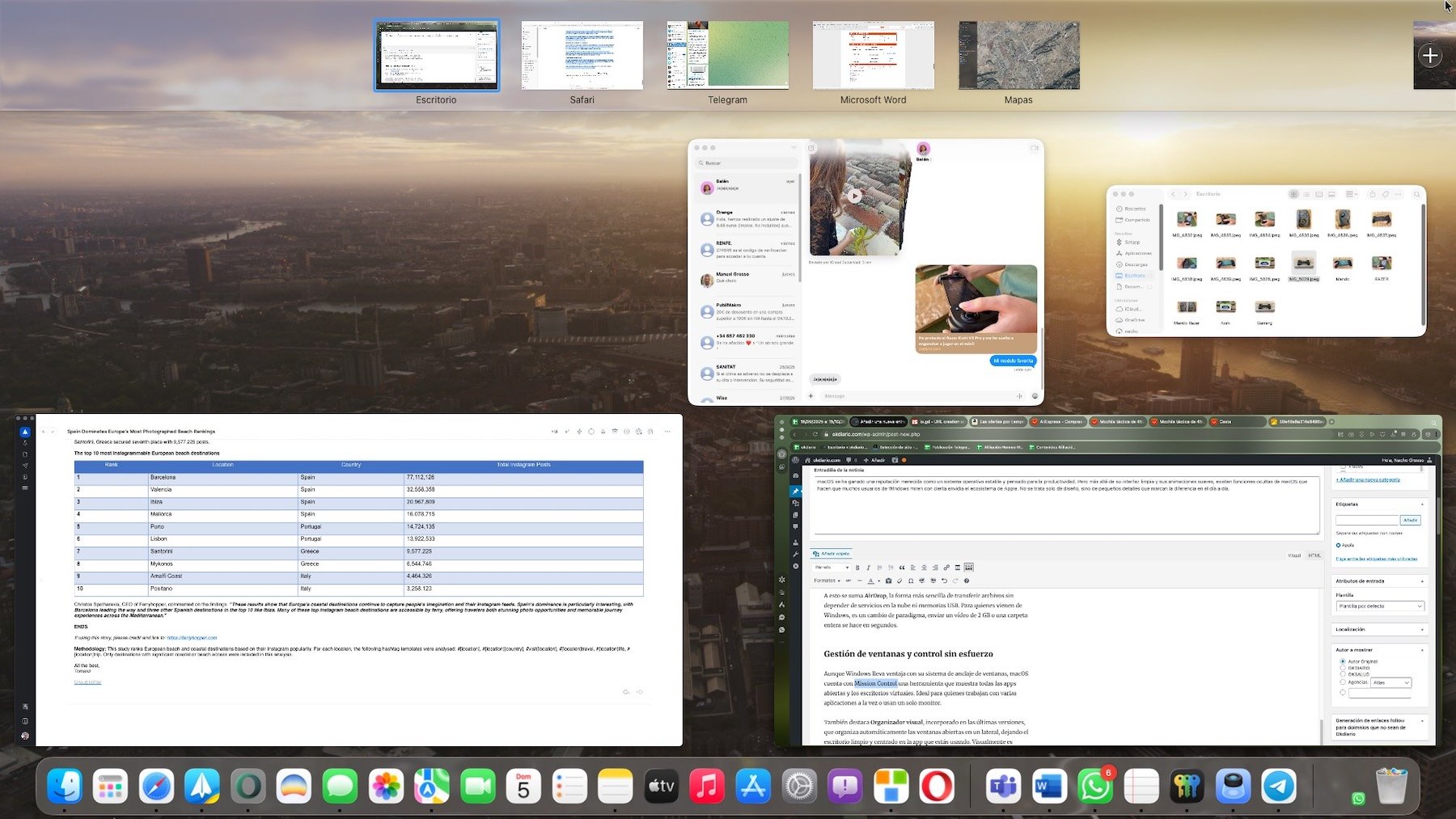 Aunque Windows lleva ventaja con su sistema de anclaje de ventanas, macOS cuenta con Mission Control una herramienta que muestra todas las apps abiertas y los escritorios virtuales. Ideal para quienes trabajan con varias aplicaciones a la vez o usan un solo monitor.