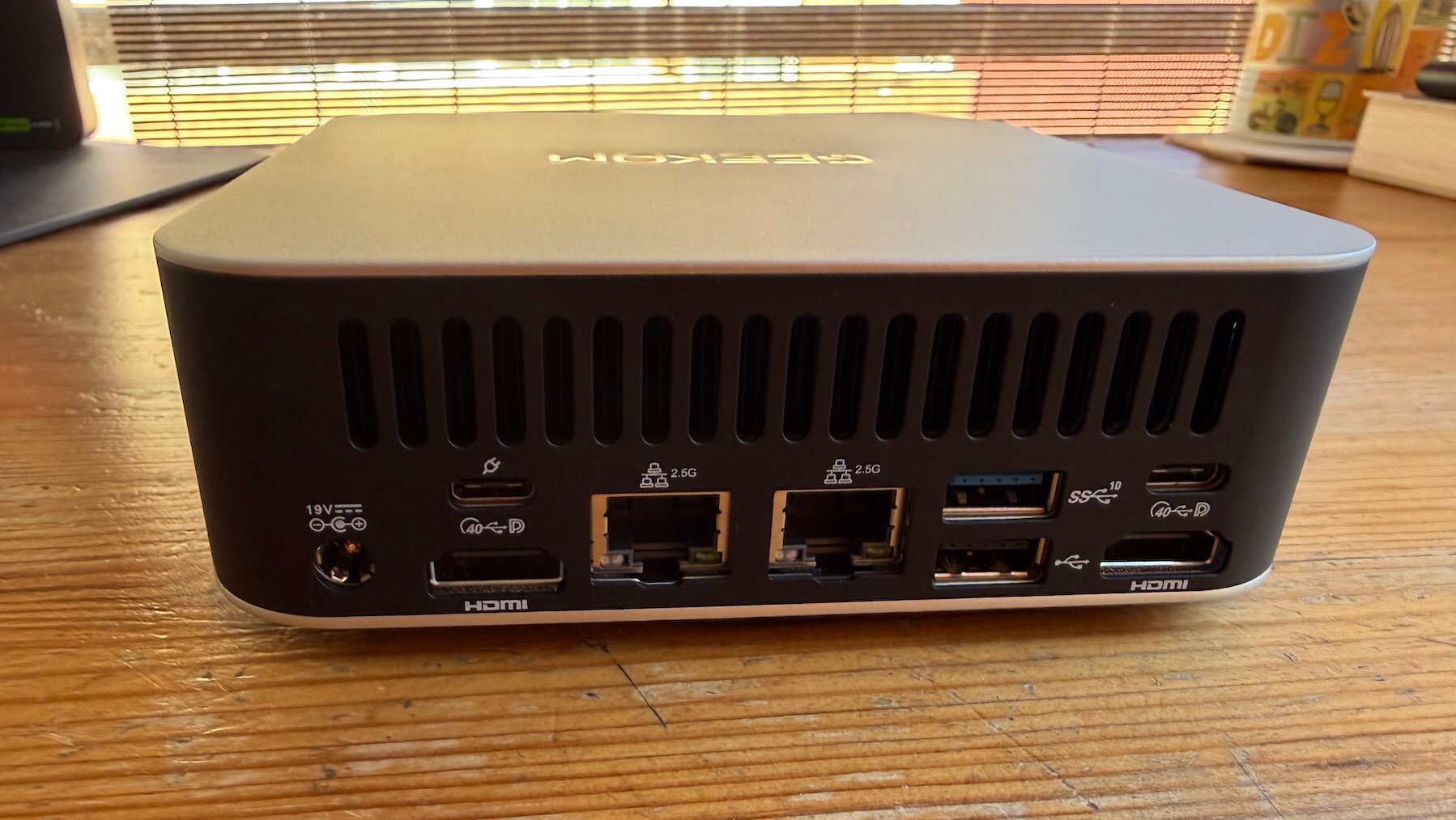 Aquí el GEEKOM A7 Max juega una de sus mejores cartas. La presencia de dos puertos USB4 amplía mucho las posibilidades, especialmente si trabajas con docks, monitores avanzados o almacenamiento externo rápido. A esto se suman suficientes puertos USB-A como para no depender constantemente de adaptadores, algo que sigue siendo un problema en muchos equipos modernos.