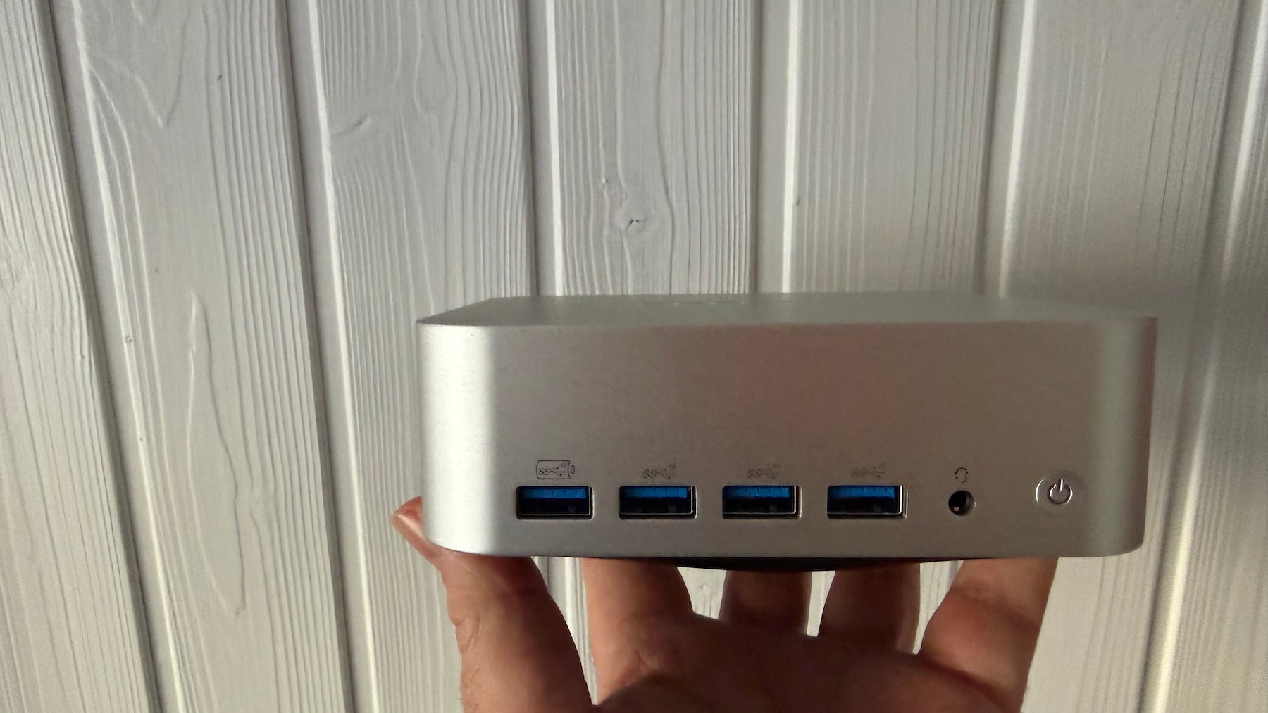 El diseño del A7 Max no busca protagonismo. El chasis de aluminio transmite solidez y queda bien tanto en un despacho doméstico como en una oficina. Ocupa poco espacio y, con el soporte VESA incluido, puede colocarse detrás del monitor y desaparecer del escritorio, algo que muchos usuarios valoran cada vez más. Hay una sensación clara de producto bien construido y pensado para durar, algo que encaja con la garantía de tres años que ofrece el fabricante.