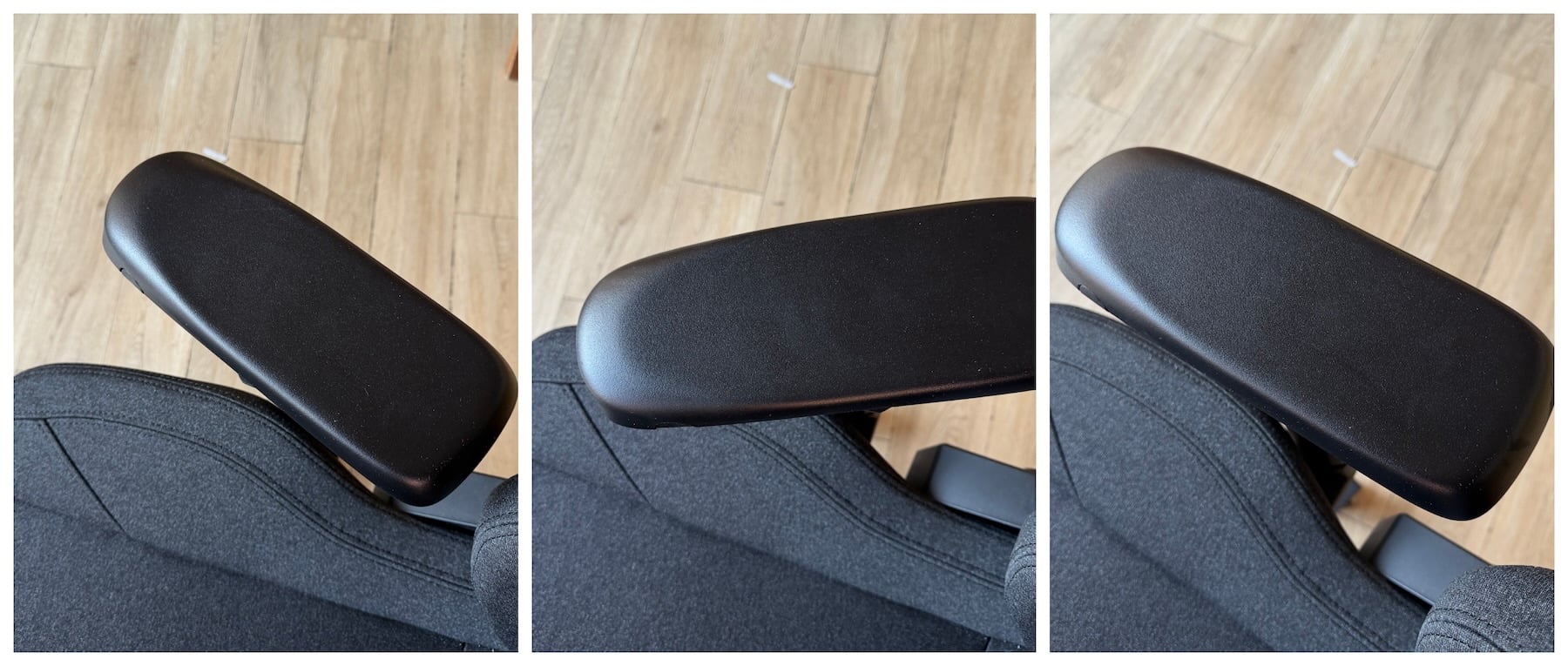 Los reposabrazos me han gustado más de lo esperado. Tienen un acabado suave, ligeramente acolchado, que resulta cómodo incluso tras bastante tiempo apoyado. No son duros ni incómodos, algo que suele ser habitual en este tipo de sillas. El ajuste es firme. Una vez los colocas en la posición adecuada, se mantienen estables, sin movimientos indeseados ni holguras. En el uso diario esto marca bastante la diferencia.