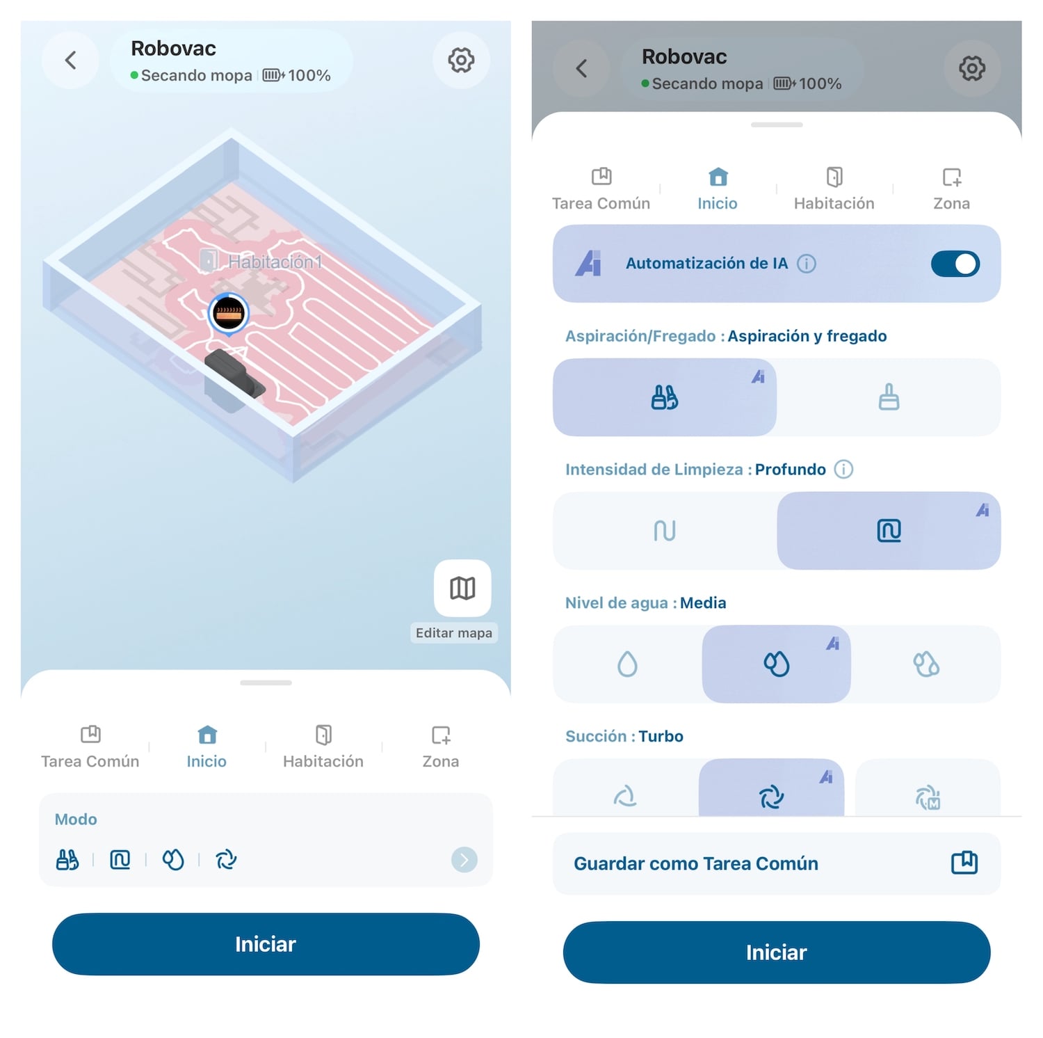 | Mapeo inteligente | Sí, con división de habitaciones y zonas restringidas |