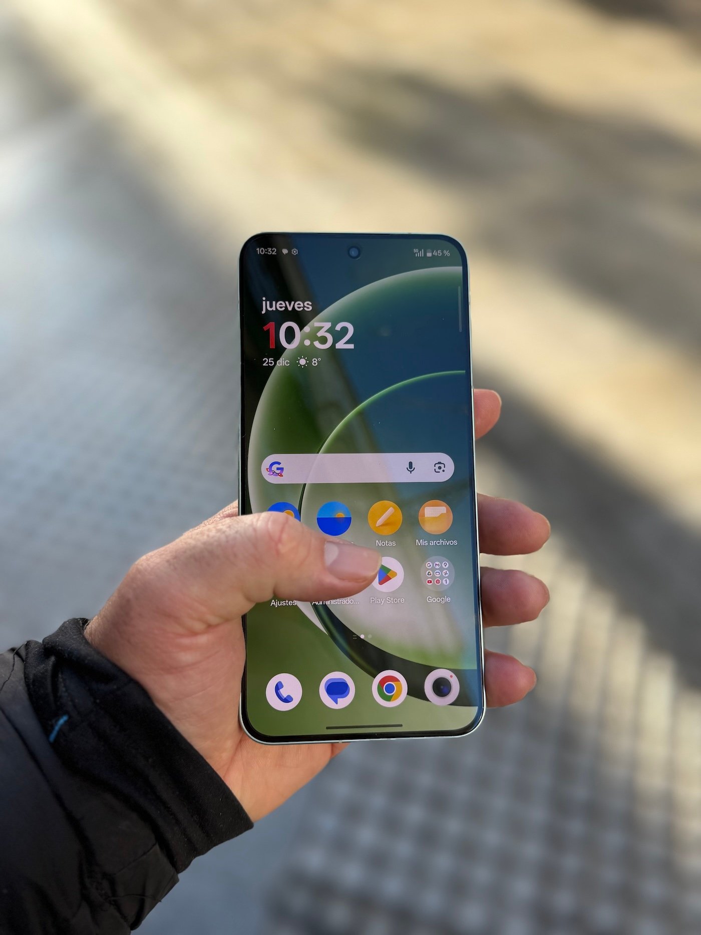 El brillo máximo permite usar el móvil en exteriores sin problemas, incluso en días soleados. Además, la tasa de refresco de hasta 165 Hz aporta una sensación de fluidez constante que se nota desde el primer momento. Desplazarse por menús, navegar por redes sociales o cambiar entre aplicaciones es una experiencia suave y continua, sin microtirones ni animaciones torpes. Es una de esas pantallas que no buscan impresionar en una primera mirada rápida, pero que convencen cuando pasas horas delante de ella.