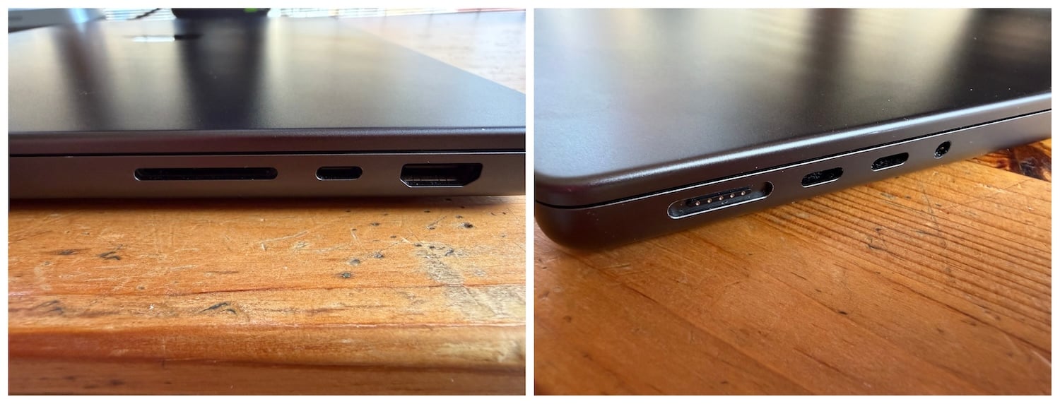 | Puertos | Tres Thunderbolt 4, HDMI, lector SDXC, MagSafe 3 y jack de 3,5 mm. |