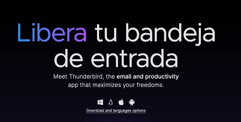 Si lo que quieres es dejar atrás un cliente de correo de pago, Thunderbird continúa siendo una alternativa muy recomendable. Su web oficial lo presenta como una aplicación de correo, calendario y contactos para Windows, Linux y macOS, y la página de descarga insiste en que los instaladores están mantenidos y distribuidos por el propio proyecto. Para un usuario generalista, eso significa una herramienta madura, gratuita y con actualizaciones vigentes.
