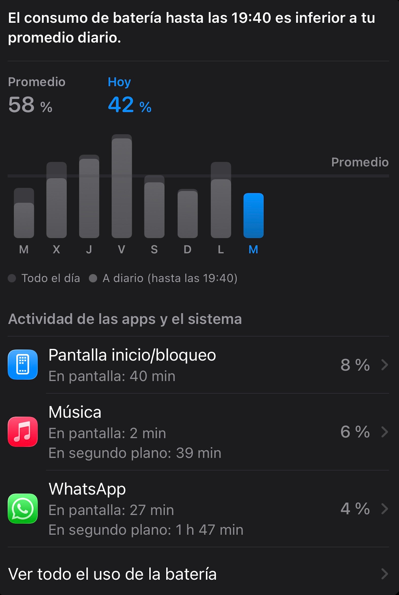 No es solo que dure más, sino que transmite tranquilidad. Terminar la jornada con más del 30% de batería ya no es algo excepcional. Aunque no haya una cifra oficial que impresione, la eficiencia del chip A19 Pro y las optimizaciones de iOS 26 hacen que la autonomía se note. No miro el porcentaje con ansiedad como antes, y eso dice mucho.