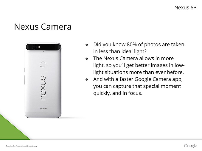 Nos quedaba poco por saber del Nexus 6P, fabricado por Huawei, que se presentará el próximo martes 29 de septiembre, junto con el Nexus 5X y Android 6, Marshmallow. Sin embargo, como ha sucedido con los Lumia 950, se ha filtrado una serie diapositivas de marketing que traen nuevas imágenes del Nexus 6P y que confirman la mayoría de prestaciones que ya se venían rumoreando.