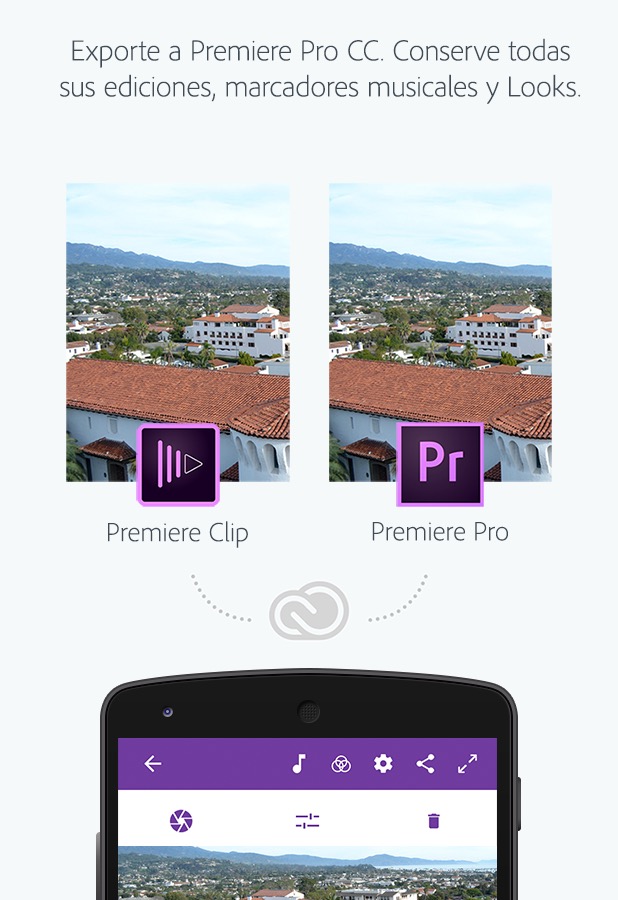 Si eres sencillamente un usuario de smartphones, que de cuando en cuando quieres editar los vídeos que grabas con tu dispositivo, quizá tengas suficiente con lo anterior, pero si eres un entusiasta del vídeo o profesional, te conviene saber que además de editar en el dispositivo, puedes después exportar los proyectos para acabarlos o modificarlos en el programa de escritorio profesional. Así, quizá puedas hacer una edición previa en tu teléfono y después pulirla y mejorarla con todas las herramientas del programa profesional de Adobe.