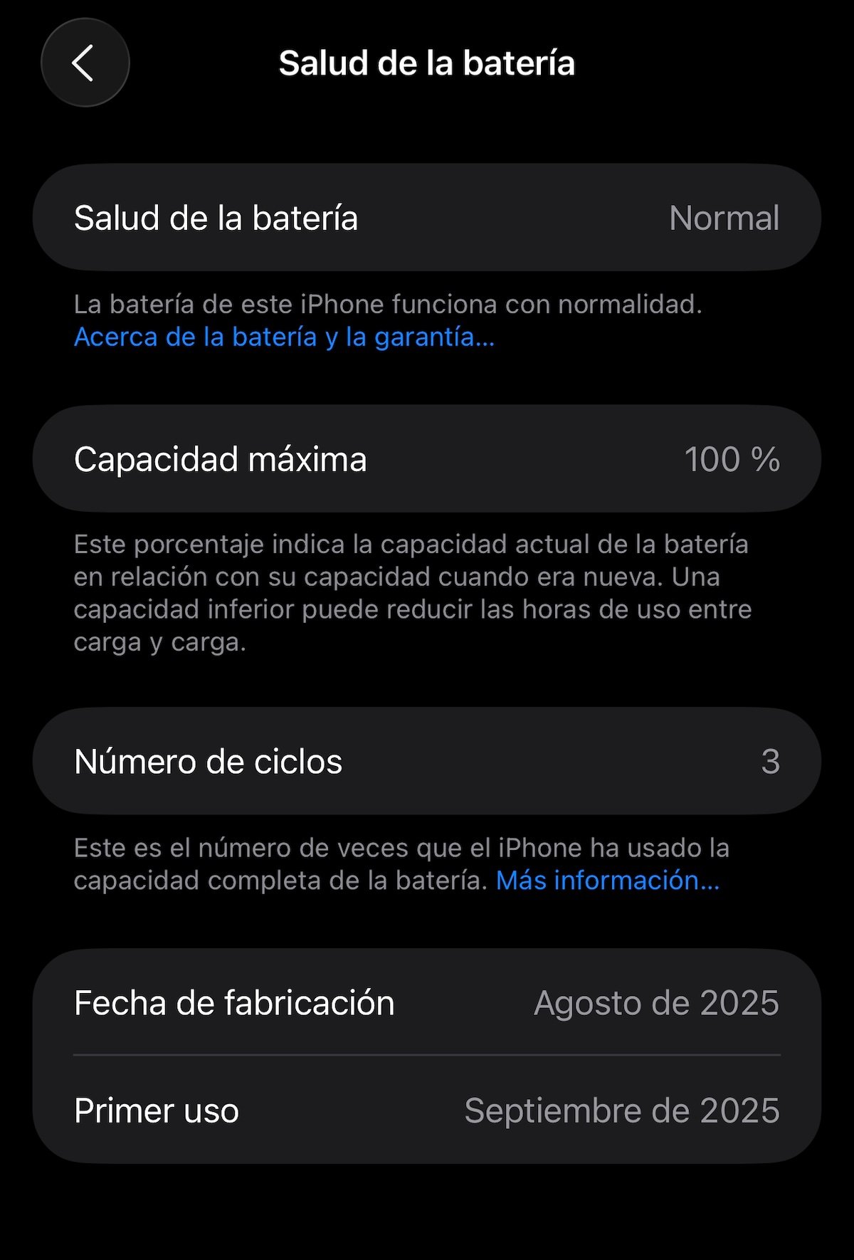De esta forma, la batería pasa menos tiempo al 100 %, algo que reduce el desgaste químico y prolonga su capacidad total con el paso de los meses. Puedes comprobar si la tienes activada en Ajustes > Batería > Salud de la batería.