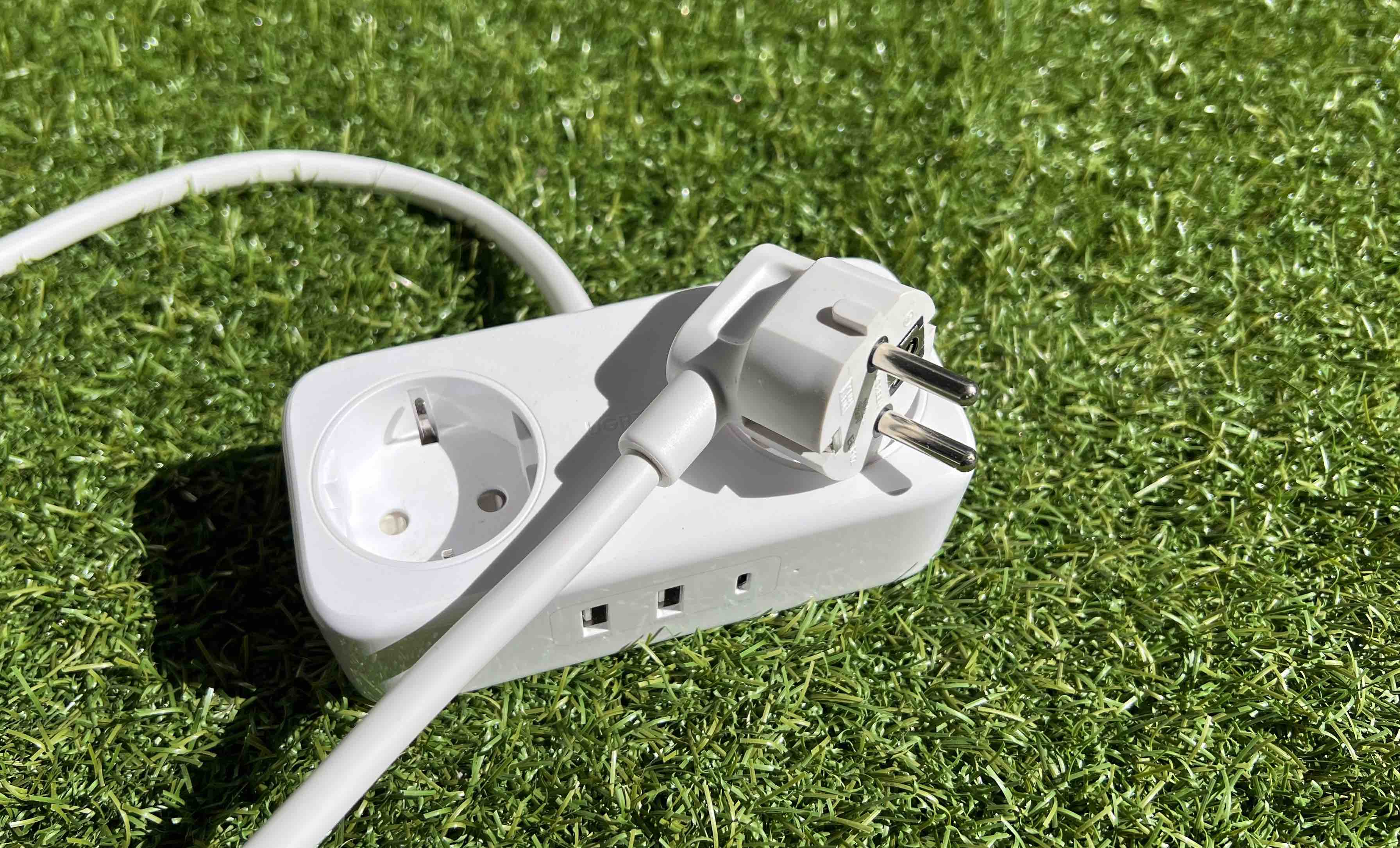 Esta regleta llama la atención por su tamaño compacto, pero si hay algo llamativo es el grosor de su cable. Esto ya pinta bien de entrada, por lo que la primera tarjeta de presentación es muy buena. Consta de 2 entradas de corriente capaces de dar 4000W, a 16A max y 250V, por lo que puedes poner un dispositivo potente que no se va a calentar, desde la plancha de la ropa a un frigorífico.