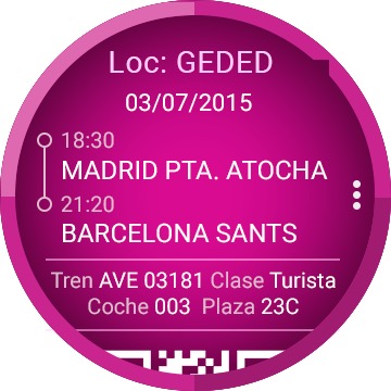Por supuesto, ya es habitual llevar los billetes de tren o avión en el móvil, pero con este lanzamiento se pone a la altura del reloj de Apple que cuenta también con una app, aunque más básica, para usar con los trenes de Renfe. El menú de la aplicación para el Gear S2 incluye un listado con todos los billetes que el usuario haya adquirido y los detalles asociados a cada viaje, para que de un solo vistazo el viajero pueda saber su número de tren, de coche y de plaza en el vagón, así como el horario de salida y de llegada. La app incluye asimismo el la tarjeta de embarque del billete, con un código QR para hacer el “check-in” en el control de embarque. Gracias a la información sobre el tiempo de espera y el trayecto en vivo, el viajero podrá saber en todo momento el tiempo que queda para la salida de su próximo viaje y el recorrido que ya ha realizado una vez que se suba al tren.