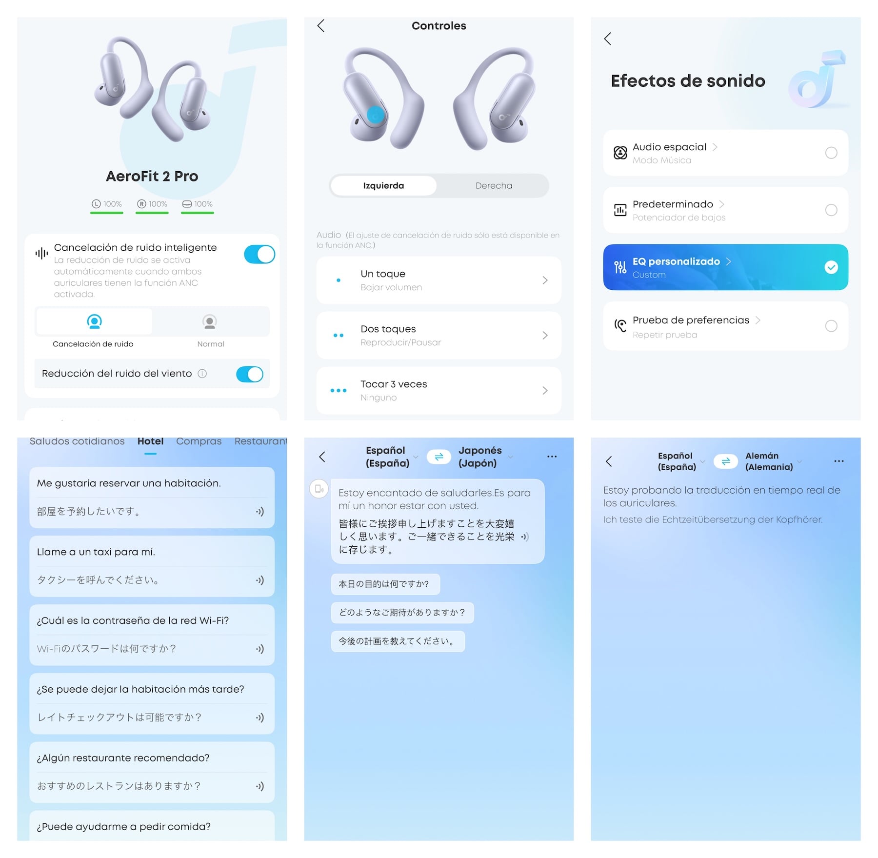 Hay otro punto que me parece especialmente llamativo, las funciones de traducción y asistencia. La aplicación no se limita al clásico control de auriculares, sino que incorpora herramientas de traducción en tiempo real, traducción cara a cara y aprendizaje contextual, además de un asistente propio. No creo que esto sea el motivo principal para comprar los AeroFit 2 Pro, pero sí es uno de esos añadidos que refuerzan la sensación de estar ante un producto más ambicioso y más trabajado de lo habitual. Una serie de funciones de las que ya dimos cuenta en el modelo anterior.