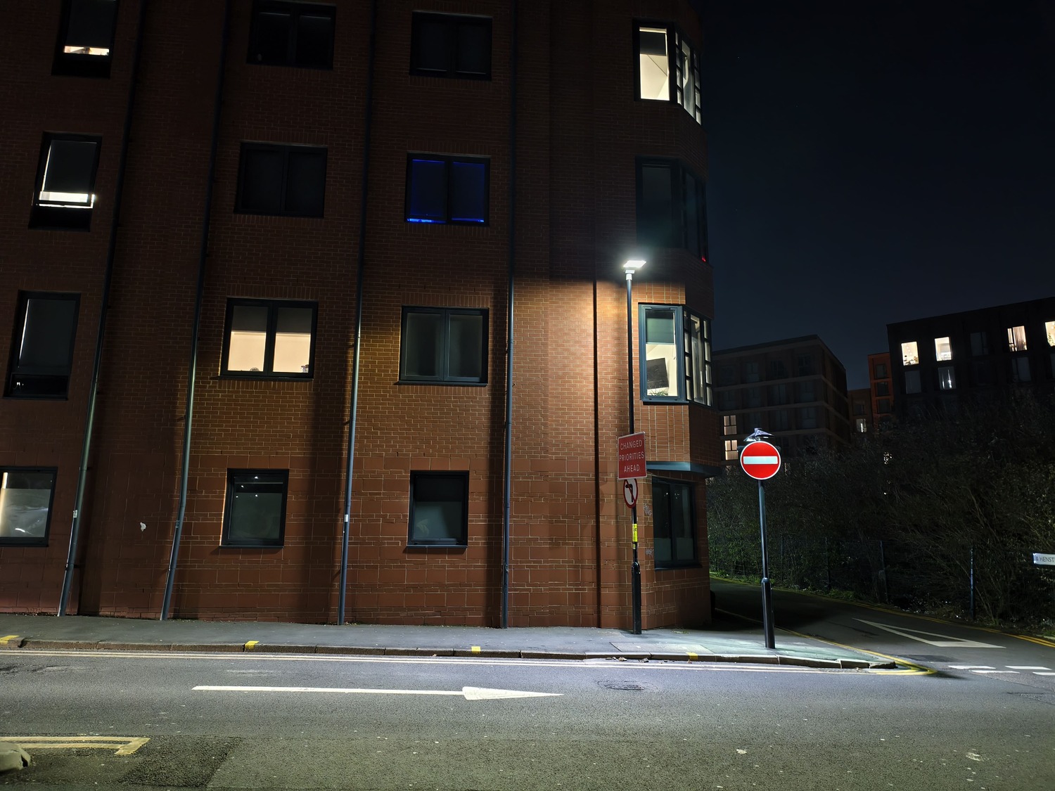 La cámara principal de 50 mpx con sensor Sony LYT-818 toma imágenes con colores naturales y un buen rango dinámico. El teleobjetivo periscópico de 200 mpx con zoom óptico 3,7x es particularmente atractivo, ya que es capaz de ofrecer un buen nivel de detalle, incluso con el zoom al máximo. Buena prueba de ello es la serie de fotografías de este edificio. Bien es cierto que la toma final, con el zoom a tope, es una muestra de que el procesado de la imagen puede ser algo agresivo. Sin embargo, hay que tener en cuenta que se trata de una situación extrema. Personalmente, prefiero este tipo de procesado, donde el nivel de ruido de la foto sea mucho más bajo.