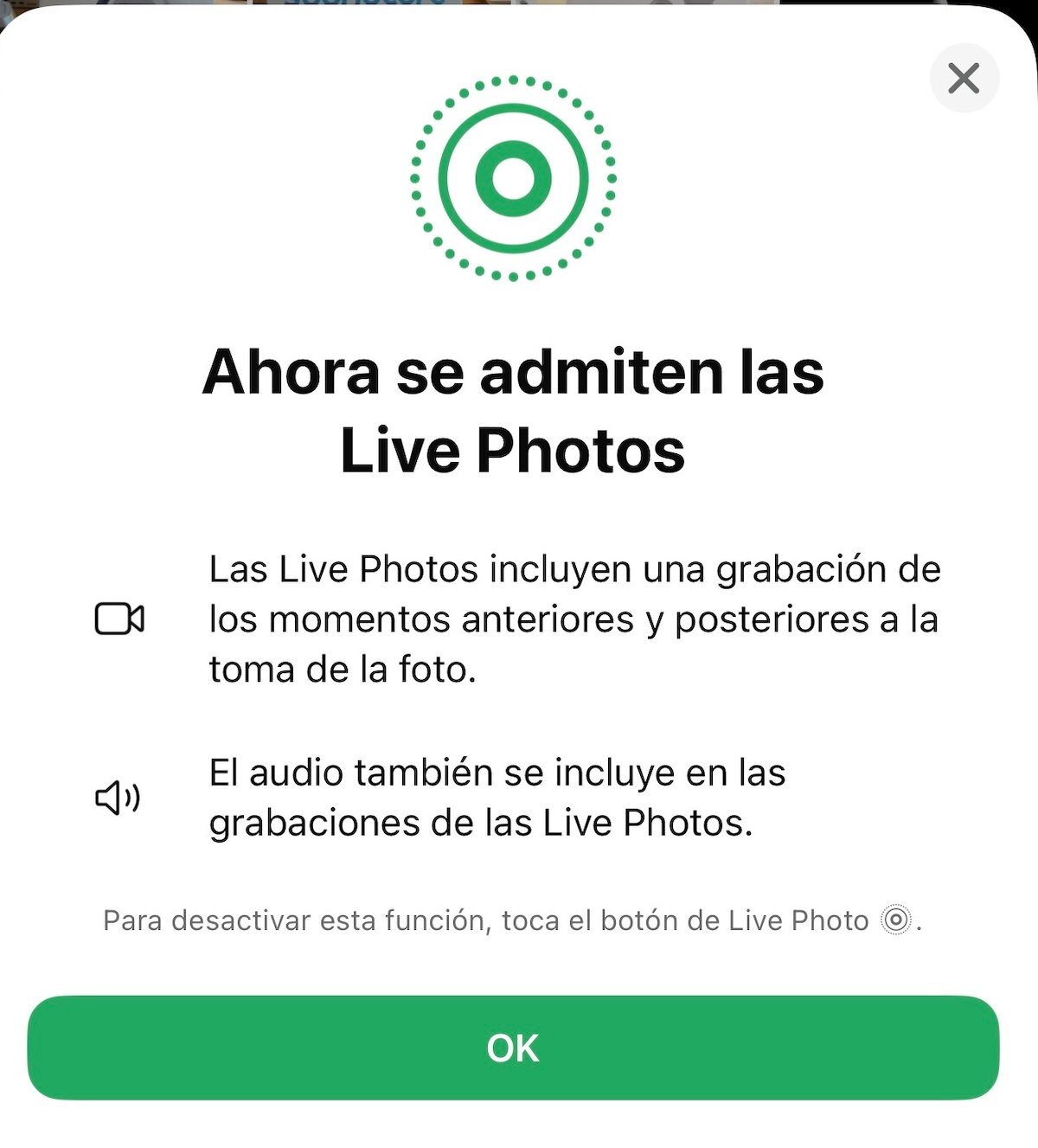 El aviso que aparece al abrir la cámara de WhatsApp en iOS lo deja claro: “Ahora se admiten las Live Photos”. Esto significa que, al hacer una foto con el modo Live activado, la app guardará también los segundos anteriores y posteriores, junto al sonido. De esta forma, cada imagen se convierte en un pequeño clip que cobra vida cuando se toca en la galería o dentro del chat.