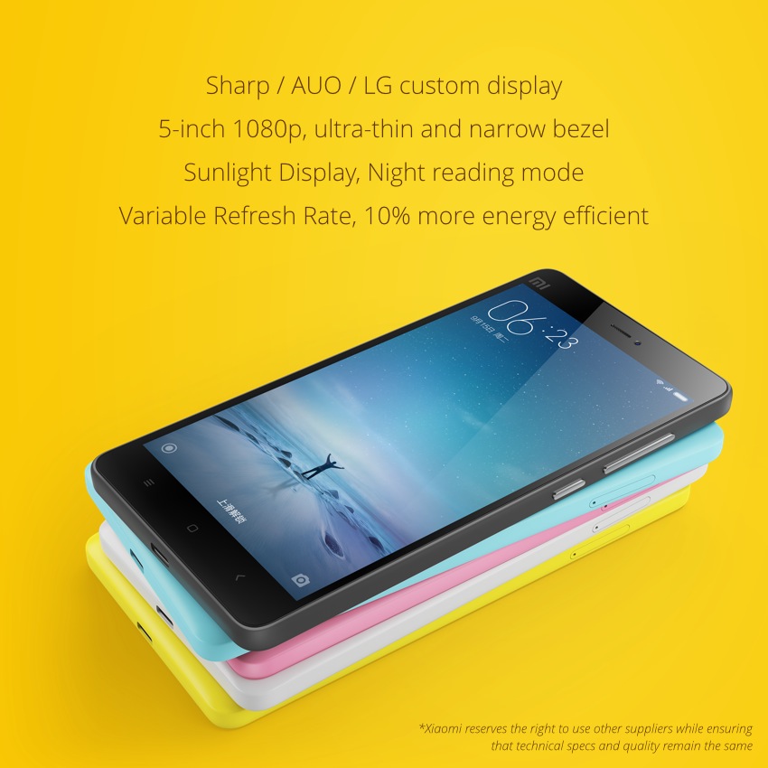 Como decíamos, el móvil no tiene una carcasa lujosa, pero es bastante esbelto de dimensiones ya que con su pantalla de 5 pulgadas mide 13,8 x 6,9 centímetros y tiene un grosor de 7,8 mm. Es casi igual de aspecto y dimensiones que el Xiaomi Mi4i: el frontal tiene marcos bastante discretos y las formas son tirando a rectas aunque con la carcasa suavizada en la parte posterior, muy al estilo de otros terminales de Xiaomi fabricados en policarbonato. Por supuesto, estará disponible además en distintos colores.