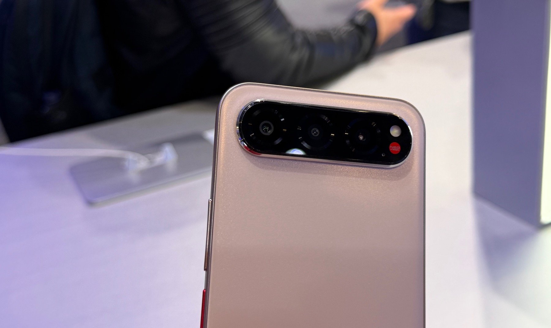 R.- Dentro de Nubia tenemos la serie Neo, que sería el hermano pequeño de RedMagic. Son todas especificaciones de gaming, pero a un precio mucho más accesible. Este año tenemos el Neo 5 GT, con gatillos de 550 hercios, prácticamente cero delay entre el toque y la respuesta. El módulo de cámara es liso para poder jugar sin interferencias y hemos incorporado por primera vez en la gama Neo un ventilador físico. Traemos especificaciones de gama flagship en un móvil que va a estar en torno a los 400 euros. Lleva MediaTek 7400, pantalla 1.5K a 144 hercios. Son especificaciones que no se habían visto en ese punto de precio.