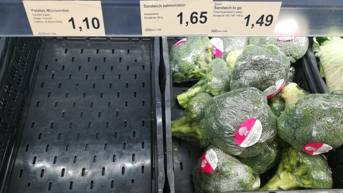 El miedo llevó a muchas personas a ir en busca de comida para encerrarse en casa y no salir durante días. Las grandes superficies se vieron colapsadas en cuestión de horas. Nadie podría prever lo que estaría a punto de pasar. Estanterías vacías a excepción de unas cuantas, el brócoli se ha convertido en el ingrediente que muchos, pese a la histeria por tener comida en casa, no quieren.