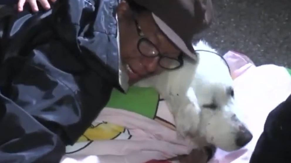 Visiblemente afectado y con síntomas de hipotermia colocaron a Ruby una manta. En el rescate vemos a sus dueños preocupados como empiezan a llorar cuando ven que el animal está en perfectas condiciones. Este rescate se ha hecho viral y sirve de ejemplo a la hora de conseguir actuar en una situación parecida. En este caso era un perro, pero podía ser cualquier niño que jugaba en esa misma zona.