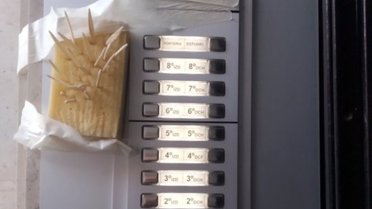Esta forma de llamar al timbre puede ser del todo novedosa. El coronavirus ha generado grandes cambios como éste, para algunos: “Pensaba que era un trozo de queso y me estaba quedando bastante perpleja.” O “Yo lo que quiero sabes es donde están puestos los palillos. ¿Es queso?”. Por la textura parece una esponja, aunque el color del queso puede llevar a cierta confusión, quizás deberían haber puesto un sistema más discreto. Esta comunidad con o sin queso se habrá convertido en una de las más comentadas en esta crisis del coronavirus.