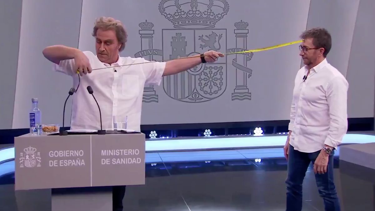 El humorista tenía ganas de volver a estar frente a las cámaras con un nuevo personaje y como no, esta vez eligió a uno de los protagonistas de esta pandemia por coronavirus. Pablo Motos ha estado arremetiendo contra la labor de Simón en estos meses al frente del equipo que ha estado haciendo frente a la pandemia, y Latre llegó con ganas de dar caña y pedir explicaciones a Motos.
