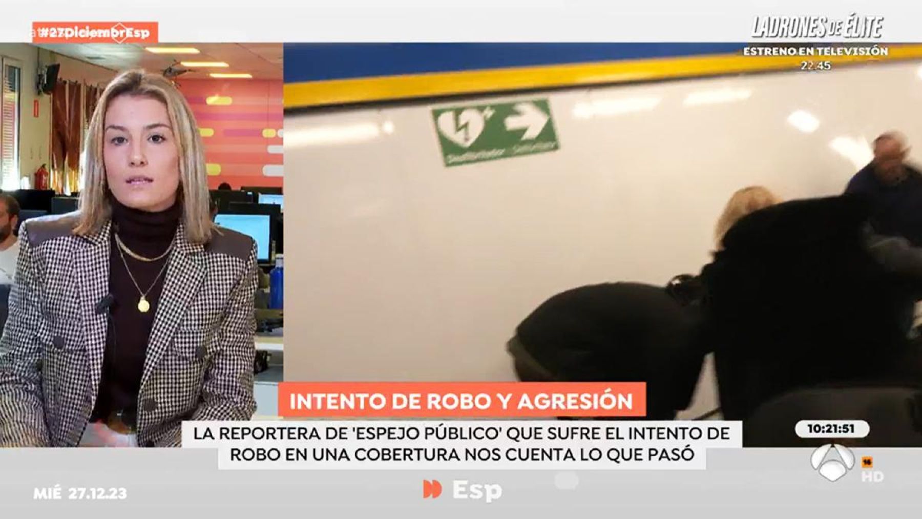 En el programa 'Espejo Público' una reportera ha sido amenazada de muerte después de sufrir un intento de robo en la calle Preciados