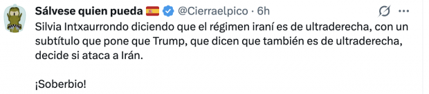 Tras este patinazo ideológico de Silvia Intxaurrondo, las redes se han echado encima de ella con reacciones como: «La ‘ultraderecha’ iraní que financió a Pablo Iglesias durante años». De este tipo hay una infinidad de mensajes en X: