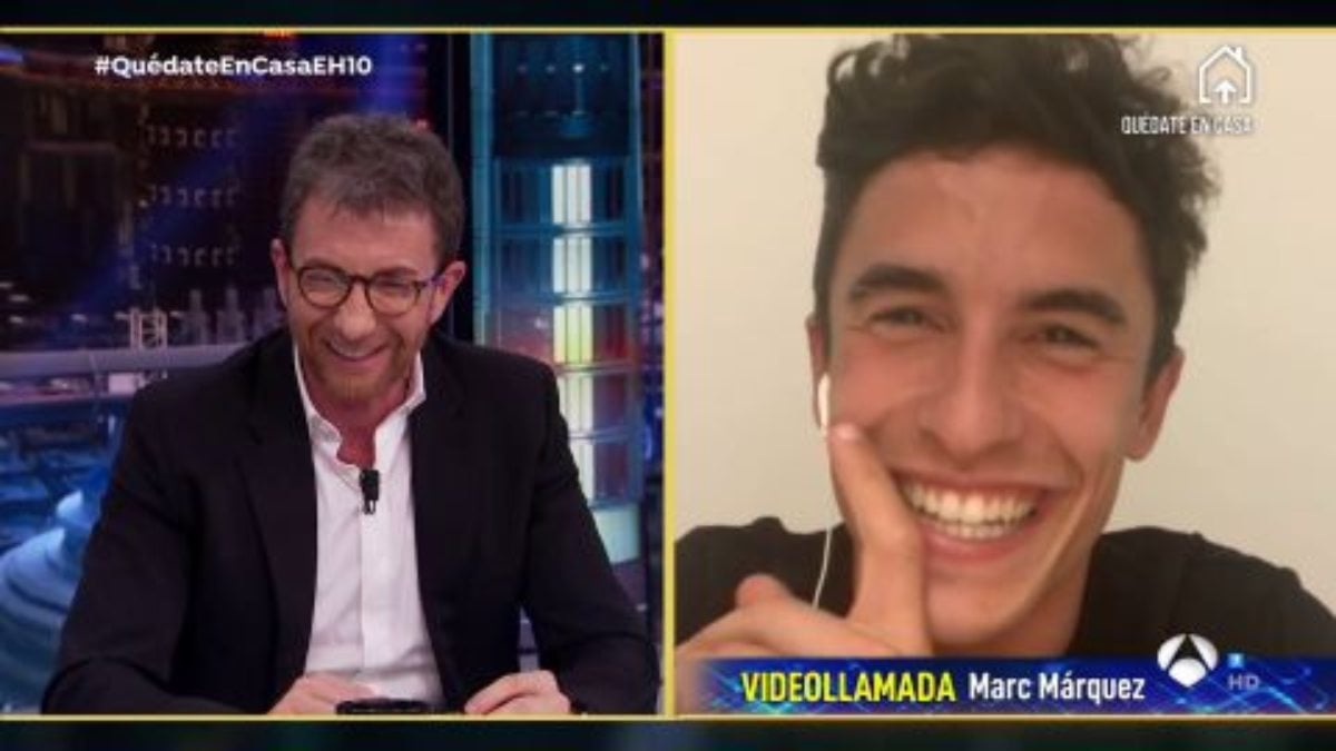 El campeón del mundo de MotoGP, Marc Márquez, atendió ayer noche a Pablo Motos y a los espectadores del programa para hablar de cómo estaba llevando el confinamiento en casa por la crisis del coronavirus. Márquez pasa la cuarentena encerrado junto a su hermano Álex, y confiesa que se pasan el día el uno con el otro. «Ya nos hemos zurrado» comentó entre risas el piloto catalán.