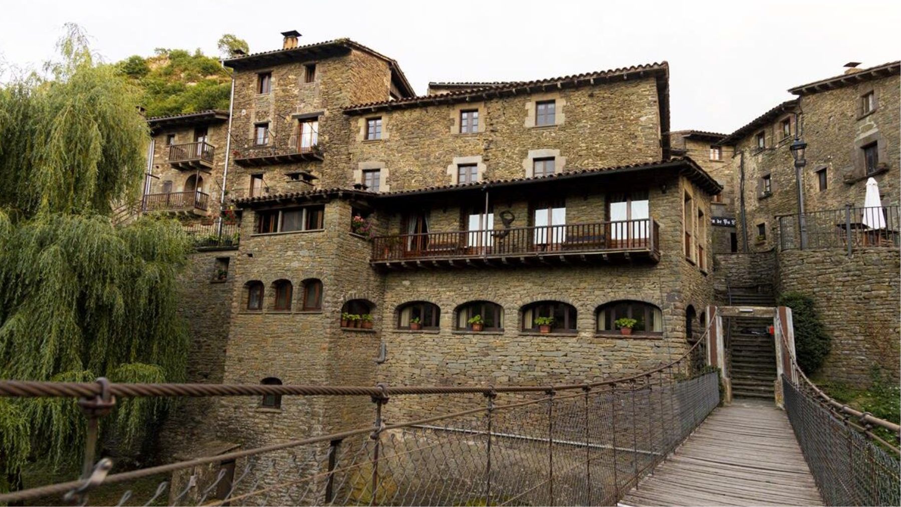 Sus casas de piedra, sus calles empedradas y el paisaje abrupto que lo rodea conservan una imagen casi intacta del pasado. Para entrar en su casco histórico hay que cruzar un llamativo puente colgante de madera, convertido en su imagen más reconocible. ¿Quieres saber de qué localidad se trata?
