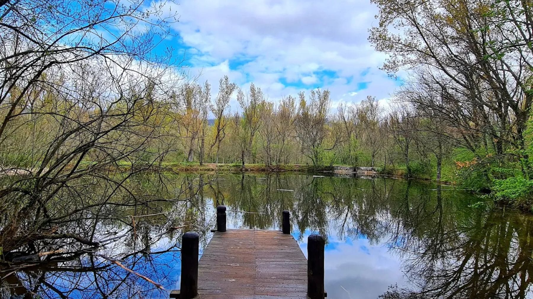 Para recrear ese ambiente escandinavo se plantaron abedules, abetos y chopos, especies asociadas al paisaje del norte de Europa. El resultado es un claro dominado por un pequeño lago artificial, atravesado por un muelle de madera y rodeado de vegetación frondosa que rompe con la imagen habitual de la sierra madrileña.