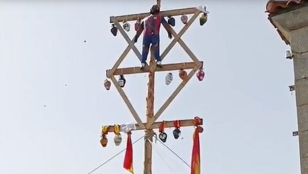 Una vez colocado, comienza el momento más esperado. Vecinos y turistas lanzan piedras tanto al muñeco como a los cántaros que cuelgan junto a él.