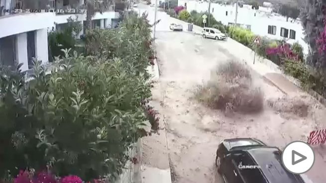 Una calle de la localidad turca de Bodrum se empieza a abrir. El asfalto se rompe para dar paso al agua. Una tubería acaba de explotar en plena carretera. El primer coche consigue pasar poco antes de que se abra un agujero de 5 metros de ancho. La fuerza del agua termina agrietando por completo el suelo y obliga al segundo vehículo a dar marcha atrás. En pocos segundos forma una gran riada que corta la calle. Las autoridades turcas continuan investigando las causas.