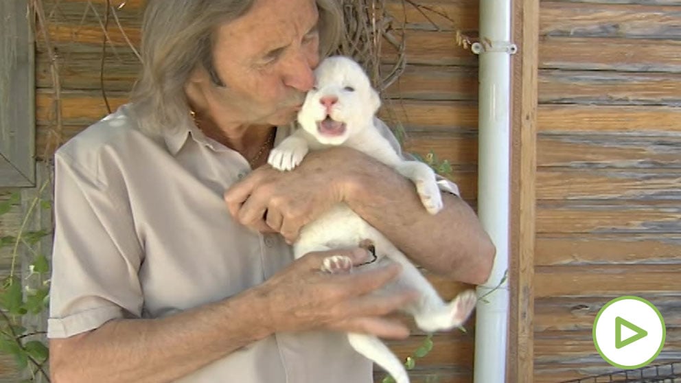El león blanco nacido en cautividad en el zoo de Sevilla, ha sido rechazado por su madre al nacer. Sin embargo, esto no le ha impedido sobrevivir y deleitarnos con estas imágenes en brazos de su cuidador y dueño del Zoo MundoPark, Juan Luis Malpartida.