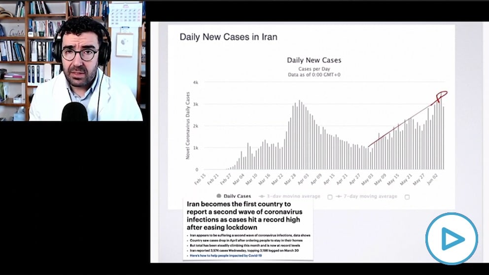 «¿Qué efecto tiene el verano? Estamos viendo algunos países donde justamente frío no hace, como Irán o estados de EE UU, ahí se han relajado y están teniendo una segunda ola, casi tan importante como la primera», lamenta el médico internista valenciano Iván Moreno. También países cálidos como los de América del Sur están ahora en su peor momento de la pandemia.