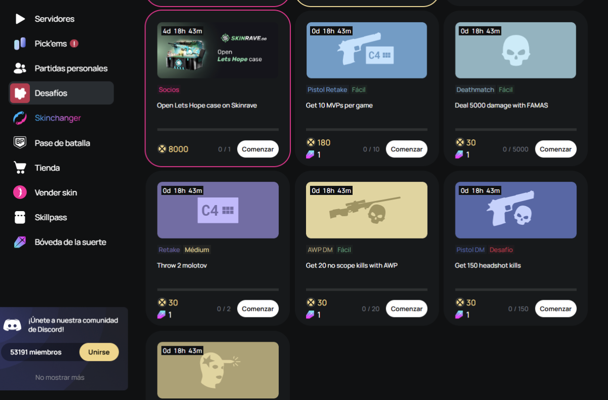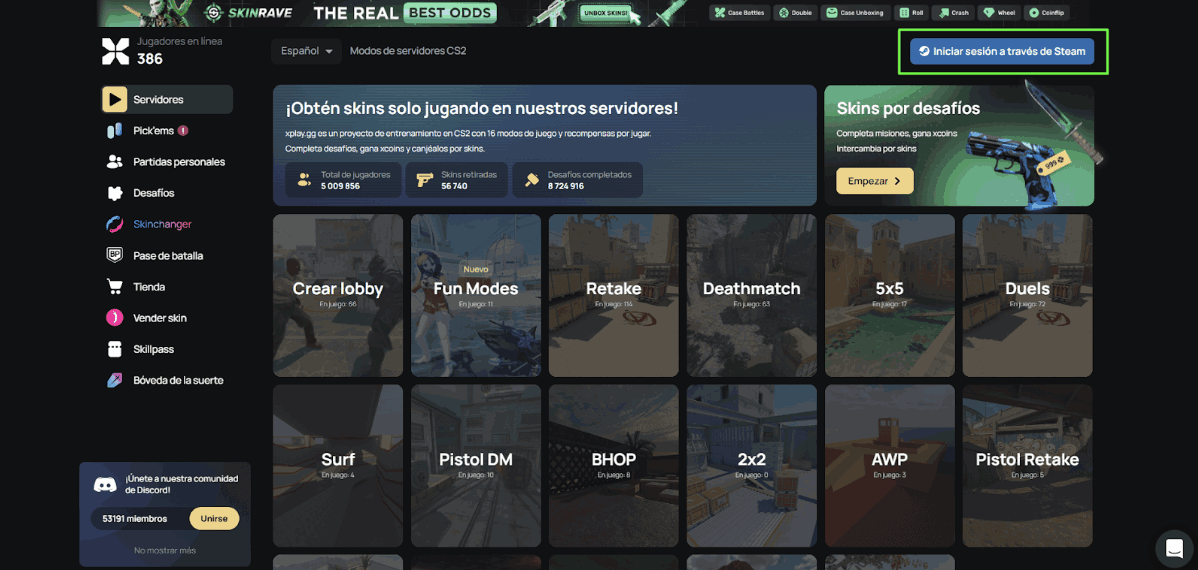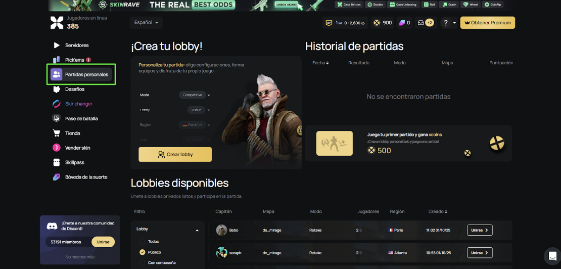 La plataforma no infringe las normas de Valve, así que no te banearán. Además, miles de jugadores de todo el mundo aprovechan todas las ventajas de la plataforma: ganar monedas, jugar con skins y practicar en desafíos.