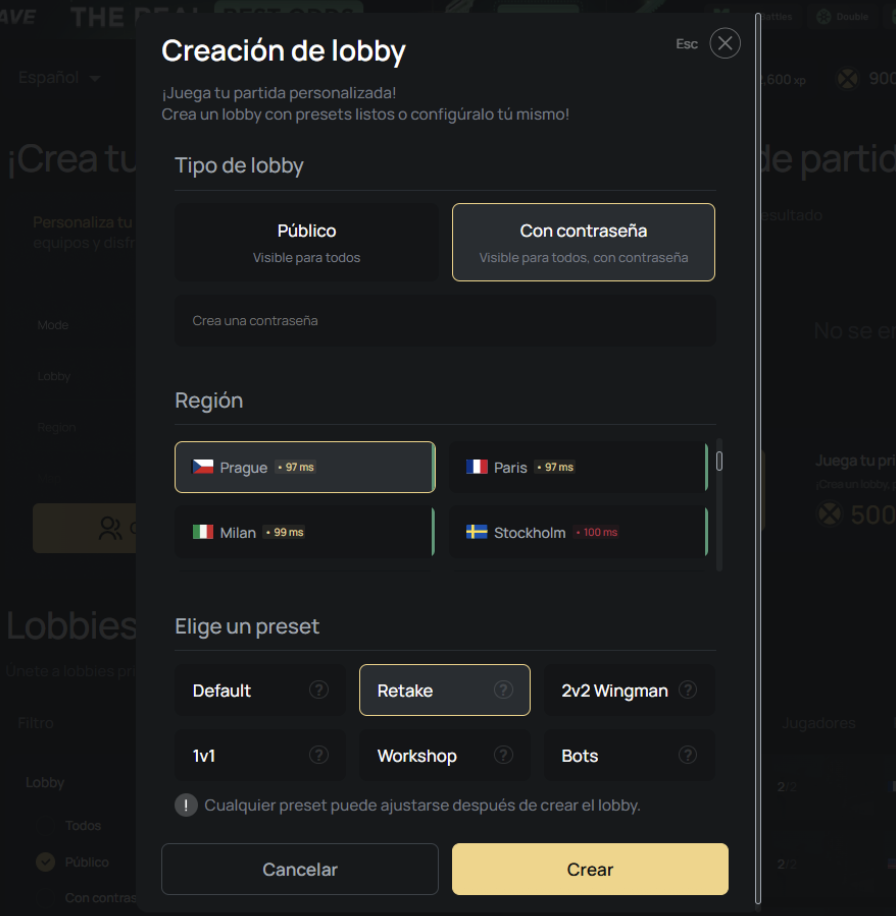 En partidas privadas, por ejemplo en xplay.gg, tú decides con quién jugar y bajo qué condiciones. Puedes invitar solo a amigos, elegir cualquier mapa, personalizar las reglas e incluso activar modos para fans como «solo tiros a la cabeza» o «visión a través de las paredes».