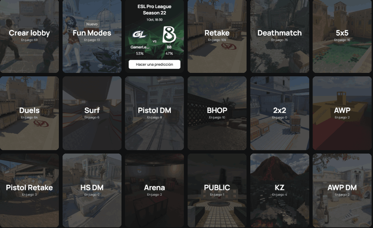 Prueba la plataforma hoy mismo y experimenta todas sus funciones: desde entrenamiento y partidas personalizadas hasta la diversión de ganar skins en CS2.