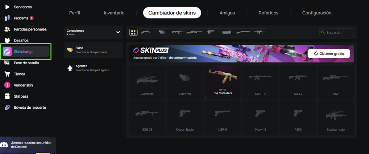 Solo hay una desventaja: todos los aspectos de la sección Cambiador de Aspectos solo están disponibles al jugar en los servidores de xplay.gg, y en CS2 no se pueden aplicar aspectos durante el matchmaking. Aun así, puedes disfrutar jugando con aspectos sin gastar un céntimo. ¡Y es genial! No hay nada igual.